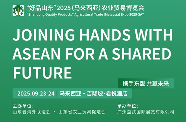 “好品山東”2025(馬來西亞)農業貿易博覽會 主辦單位:山東省海外聯誼會·山東省農業貿易促進會,山東省商務廳產業促進中心指導單位:山東省農業農村廳·山東省商務廳 承辦單位:廣州益武國際展覽有限公司